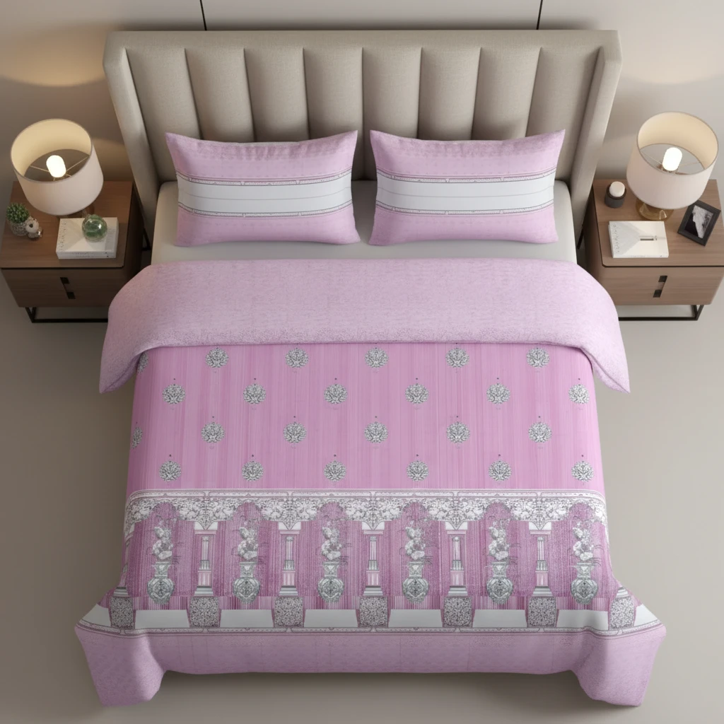 Royal pink Jaipuri Cotton Bedsheet – Luxury Handcrafted Look with 2 Pillow Covers (108×108 King Size)